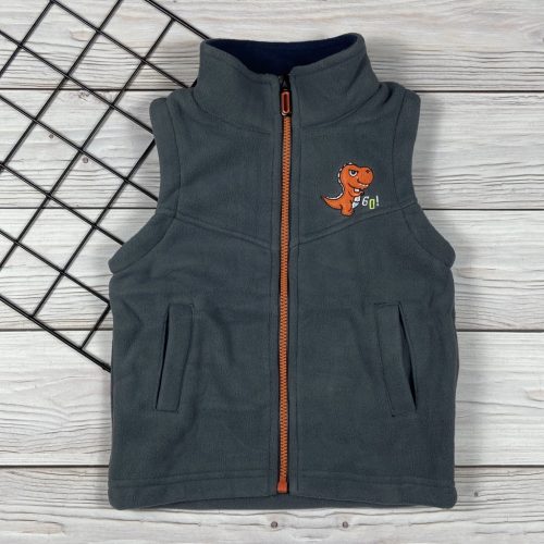 Fiú polár mellény – szürke-narancssárga, dínós mintával