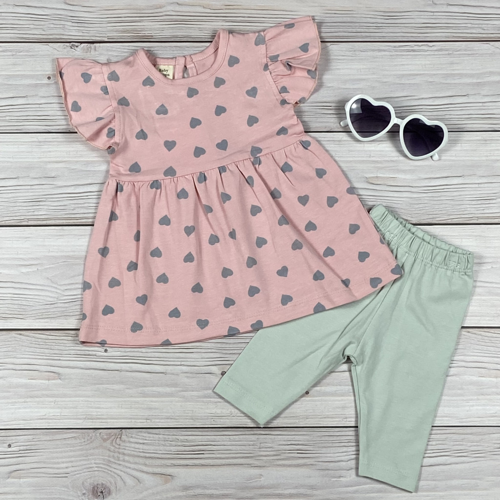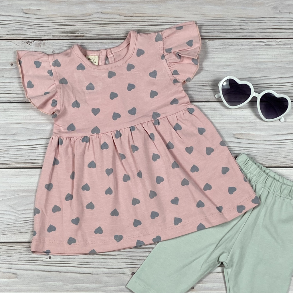 Fodros ujjú szívecskés tunikás-rövidnadrágos együttes