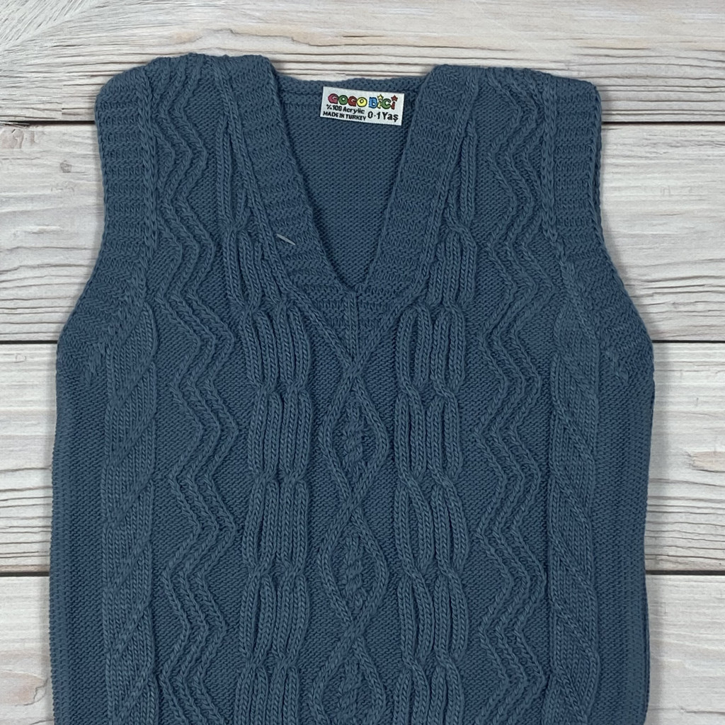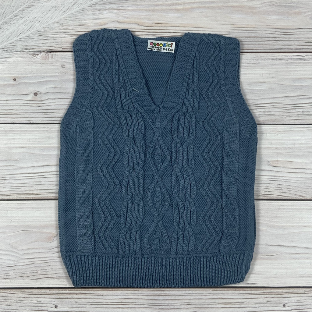 Klasszikus, elegáns stílusú kötött mellény, amely tökéletes választás ing vagy póló fölé.