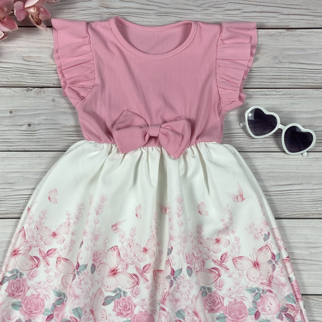 Pillangós-virágos alkalmi kislány ruha masnival