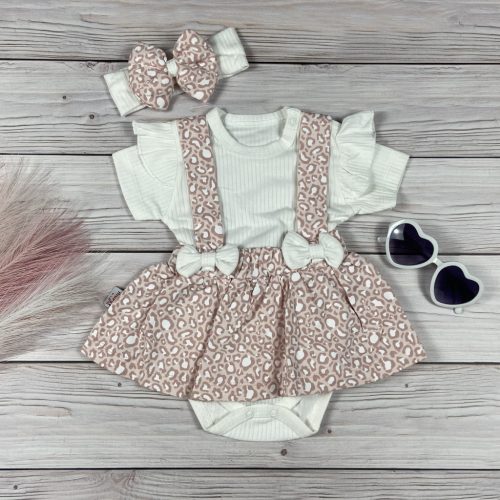 Rózsaszín leopárd mintás kantáros szoknya, bodyval és fejpánttal