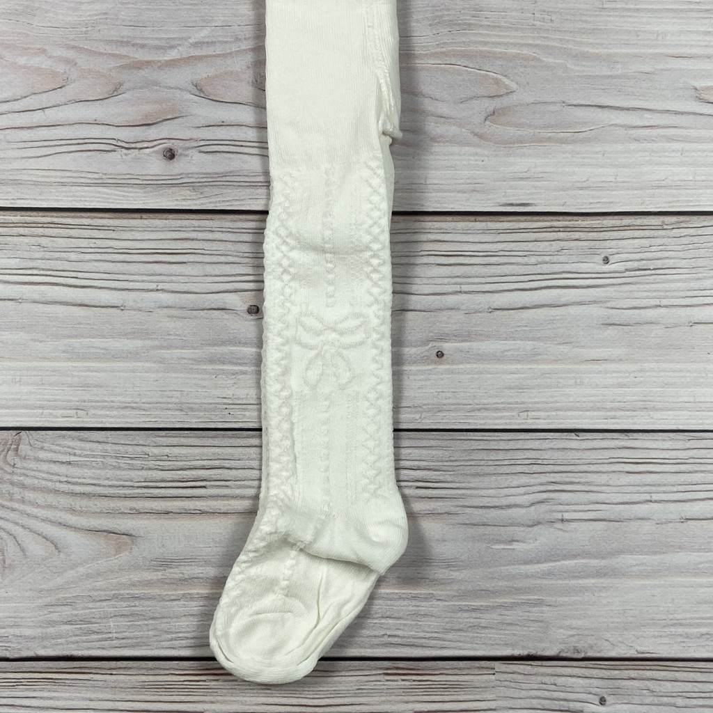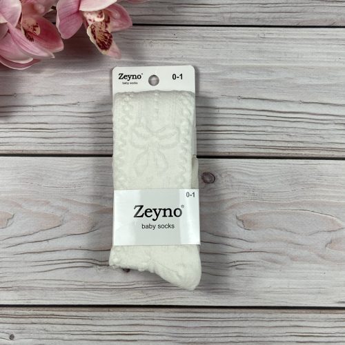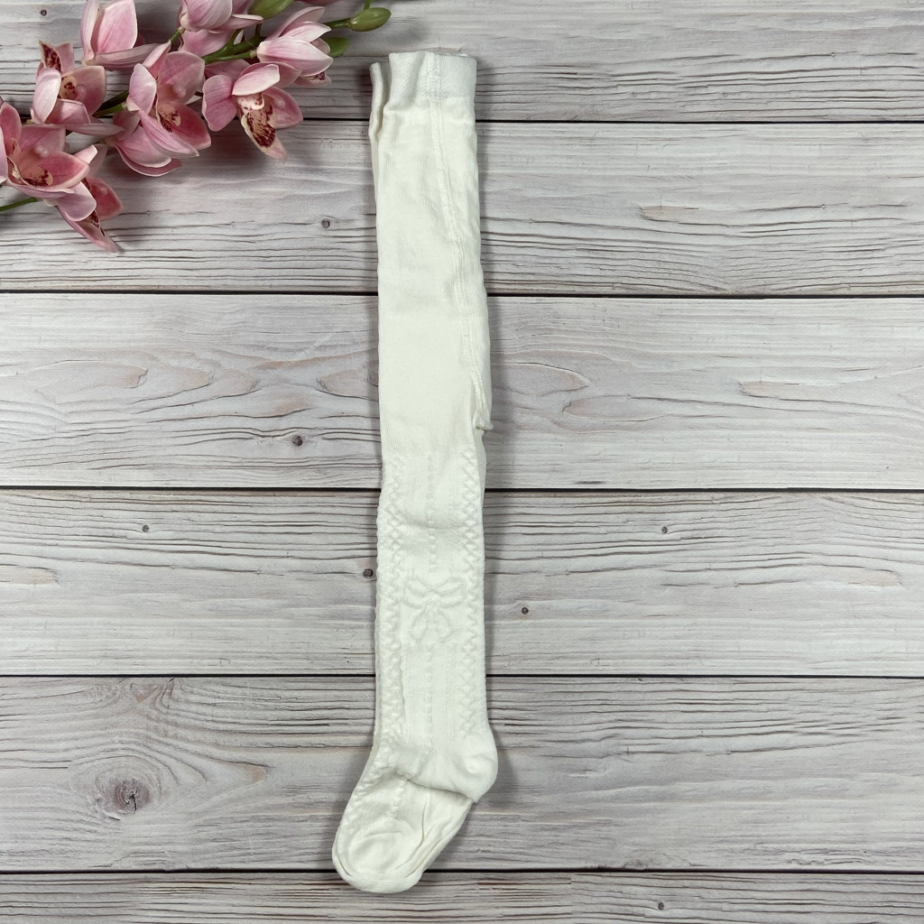 Törtfehér, masnis mintájú pamut harisnya